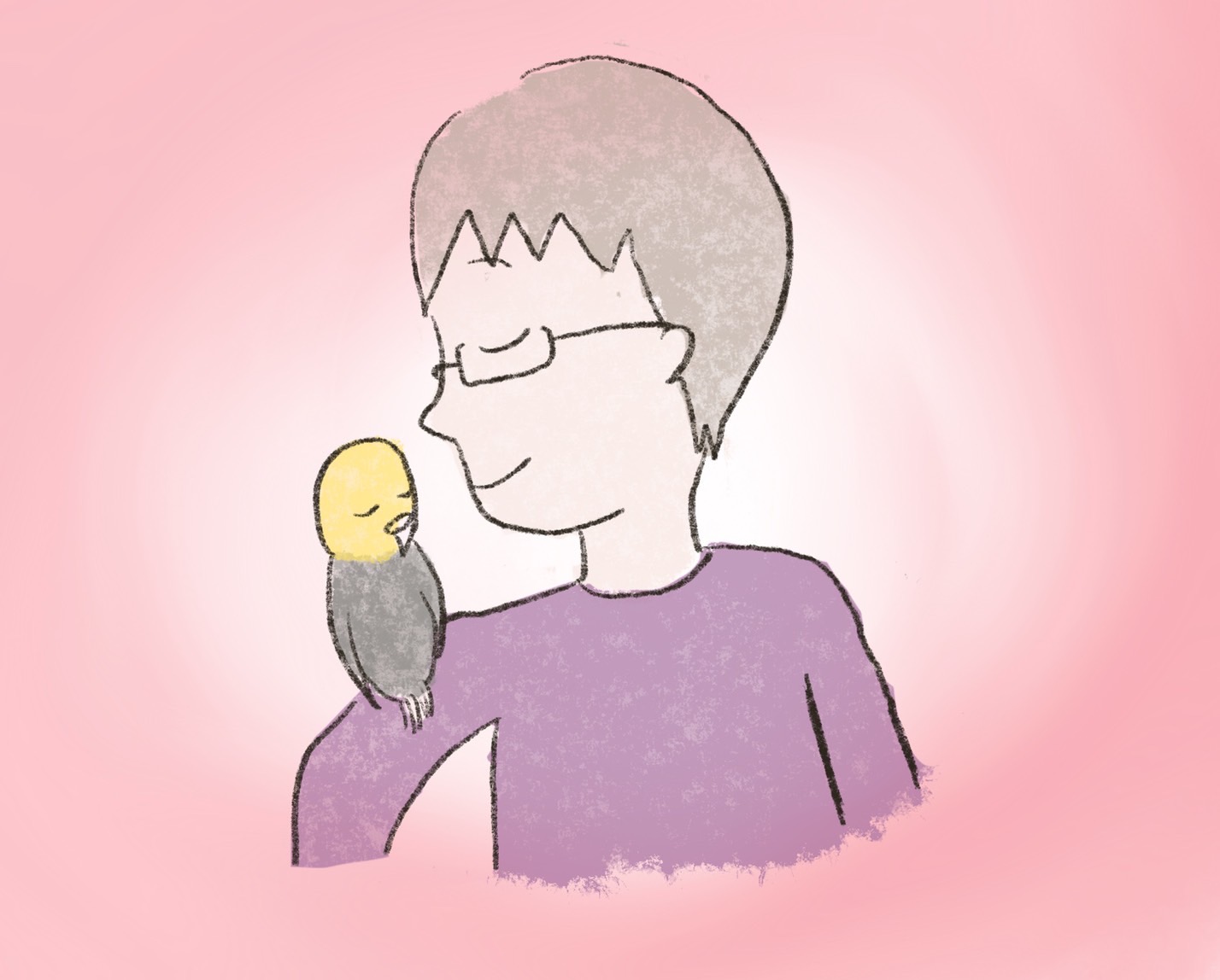 また、お母さんがお昼寝をしていると鳥かごから飛んできて、腕や肩に乗って一緒にお昼寝をするのも好きでした😊
